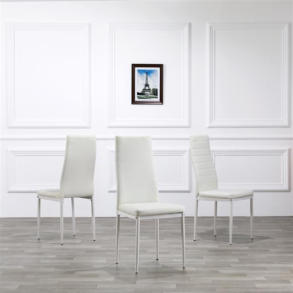 5 Piece Dining Set GlassTable and 4 Leather Chair for Kitchen Dining White