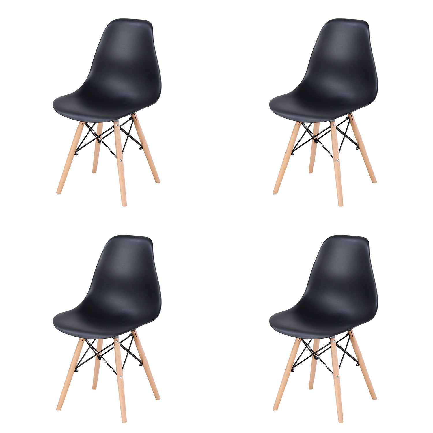 Living Room Chairs/Dining Chairs/Desk Chairs/Office Chairs/Leisure Chairs/Natural Beech Chairs with ABS backrest, a Set of 4, Black