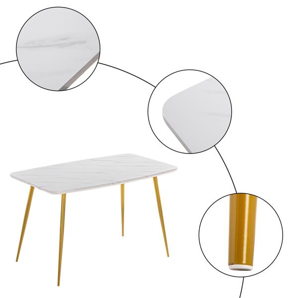 Looking for a fashionable dining table for daily use? Here I'd like to recommend this Marble Dining Table to you. It is ultra stable and built to last. Simplistic and easy-to-move design is full of elegance and charm. Its perfect size is suitable for most dining rooms. What's more, the beautiful appearance is great for decorating your home. The smooth surface makes it easier for you to clean. The stains on the table can be cleaned quickly, which reduces your worry.Plus it is easy to assemble. With a beautifully simplistic look, what are you waiting for? Don't hesitate to bring it home!