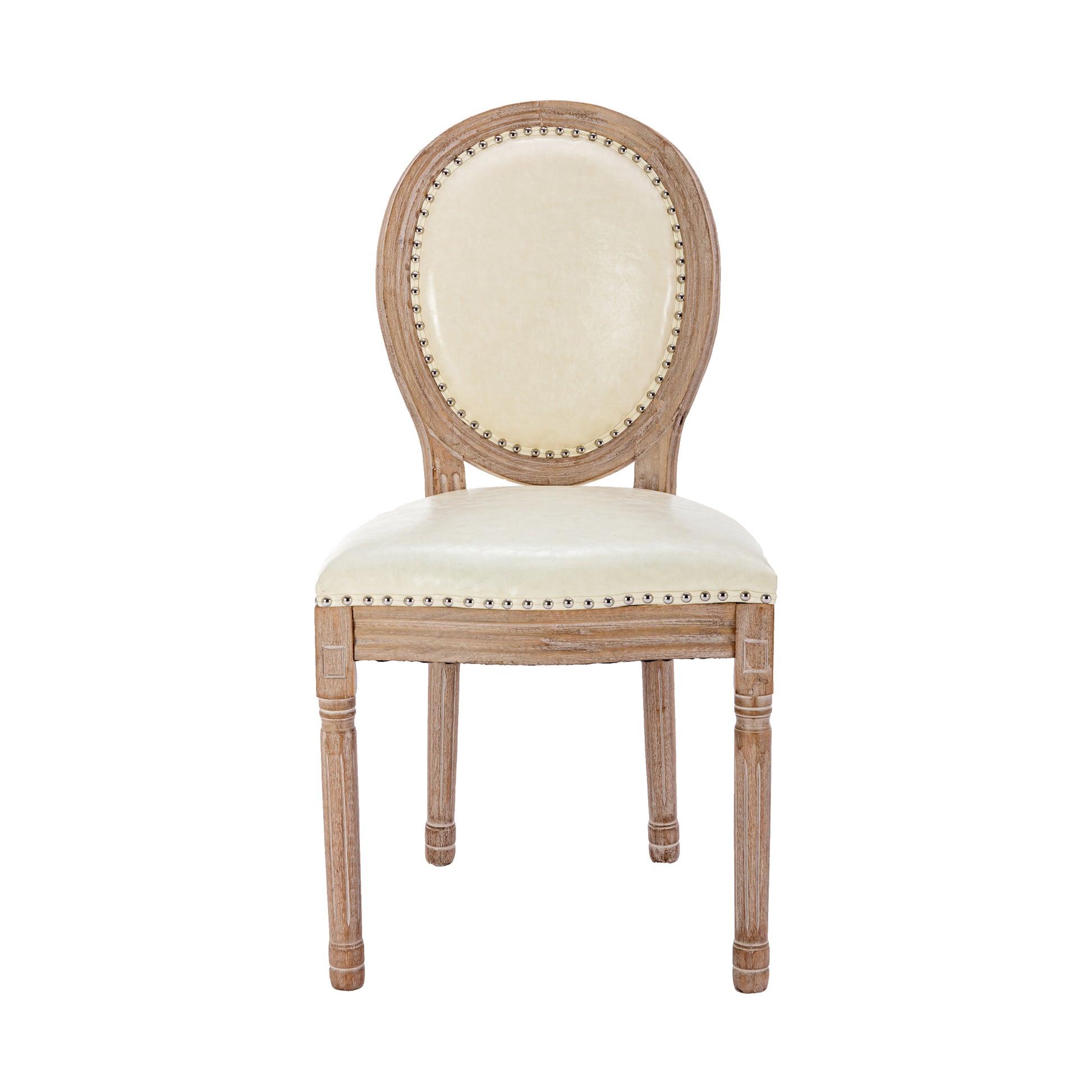 Set of 2 Upholstered French Dining Chair with rubber legs PU leather, Beige