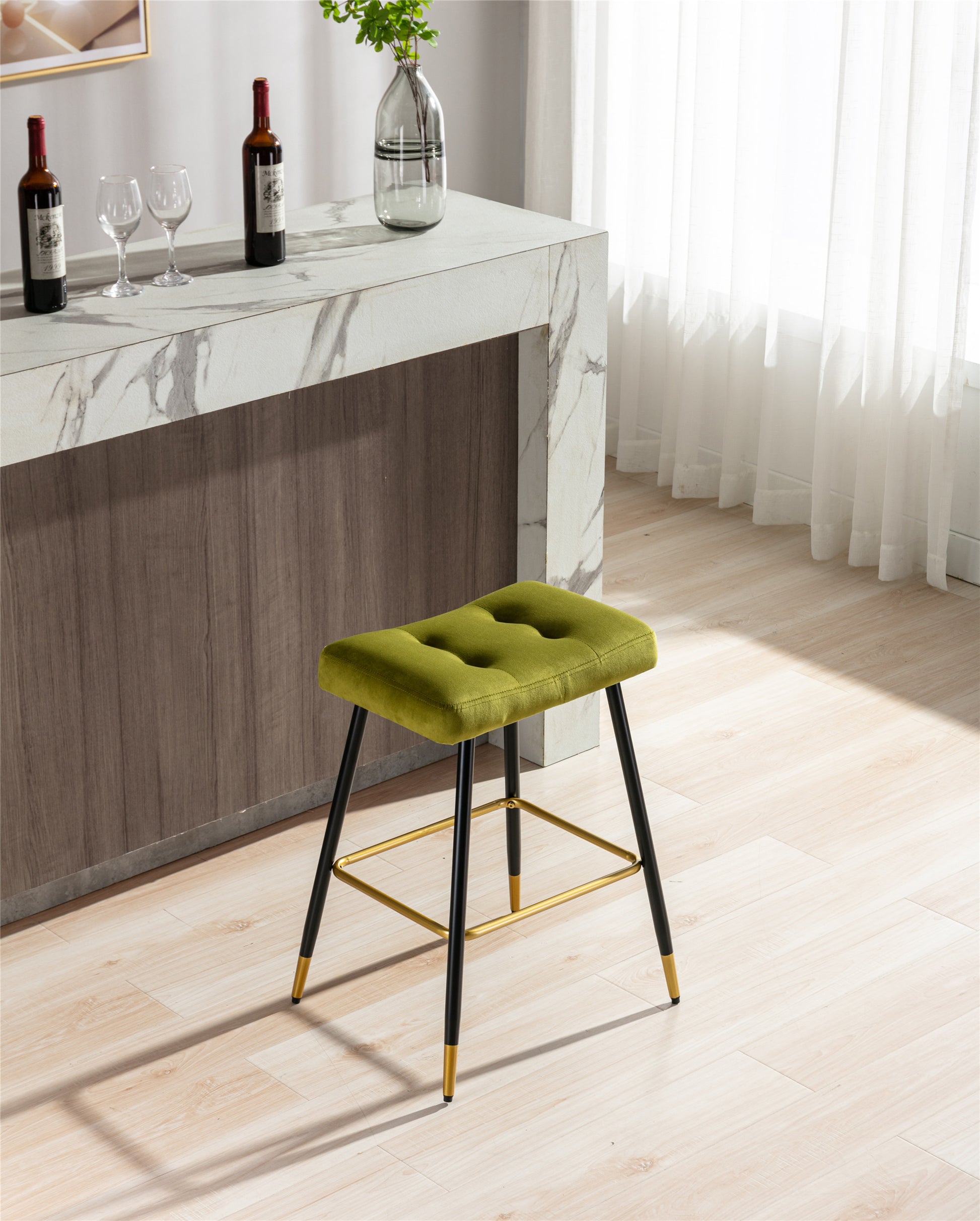 2. Comfortable Seating: The bar stools are made of High-quality fabirc , filled with firm foam sponge, Its ergonomic-designed footrest can provide more support for your body while sitting, making it relaxing and safe at the same time.