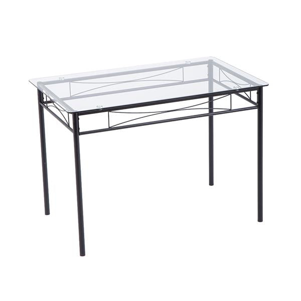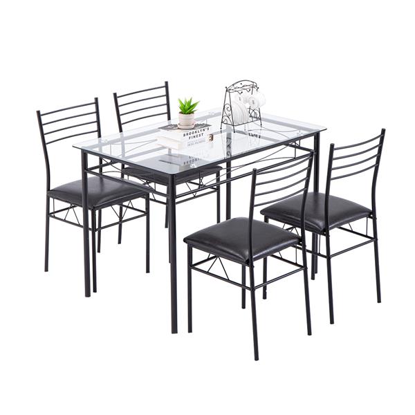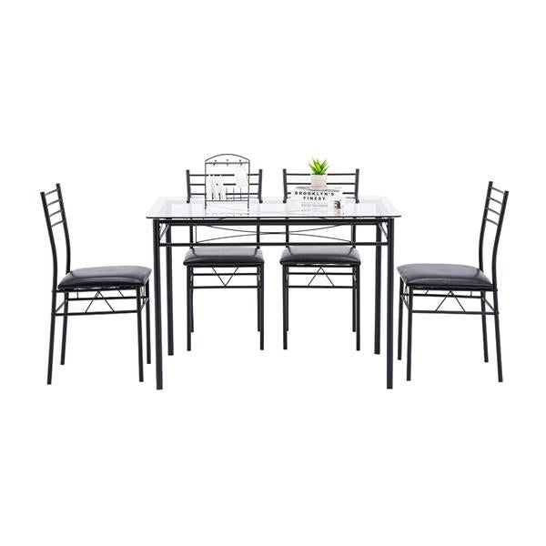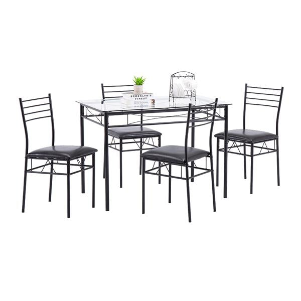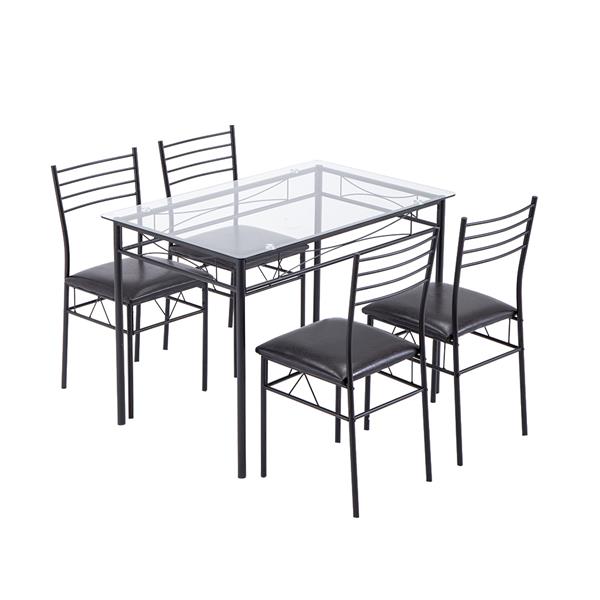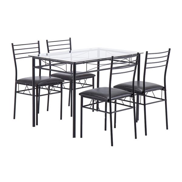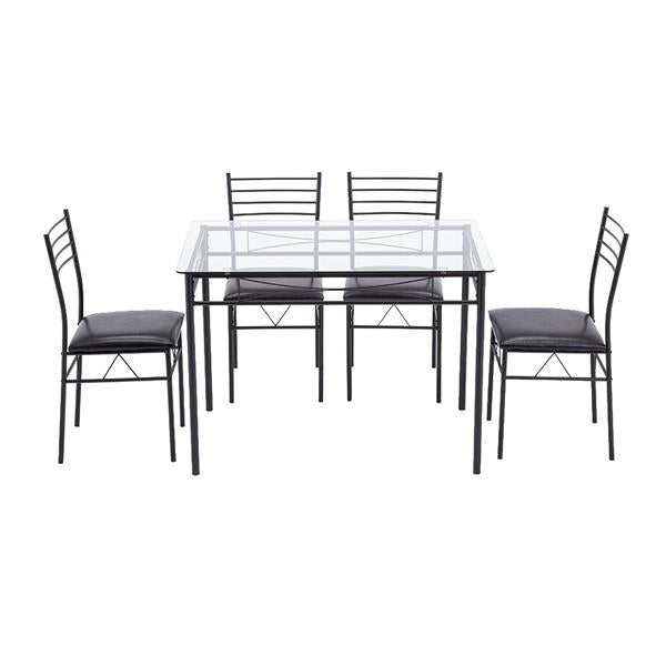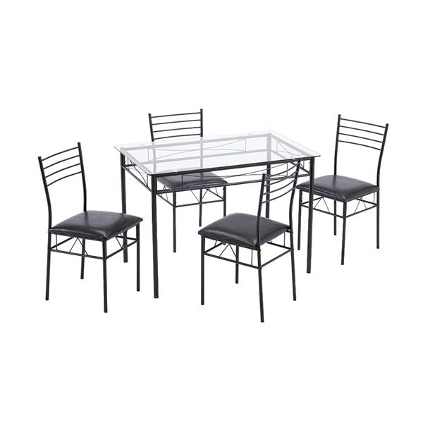[110 x 70 x 76cm] Iron Glass Dining Table and Chairs Black One Table and Four Chairs PU Cushion