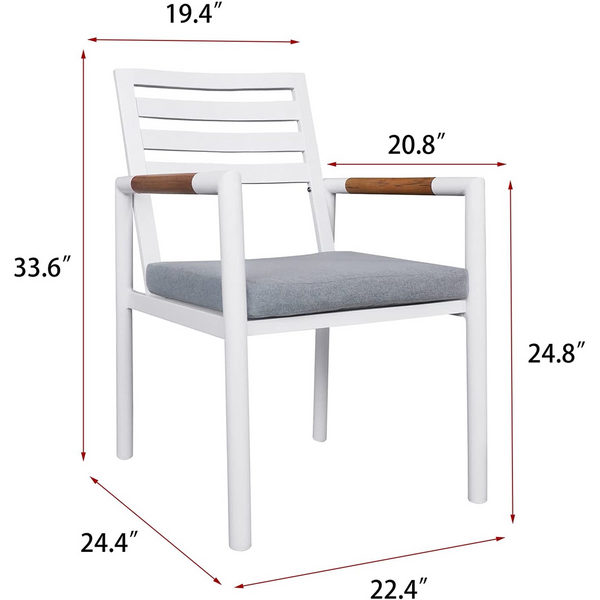 1. Modern Simple Design: The leading tone is white, and the smooth lines are matched with plastic wood handrails, which enhances the modern sense, looks simple and generous, and adds a sense of texture to the home decoration. The aluminum dining chair is suitable for an Indoor living room or outdoor lawn, garden, courtyard, and Bistro