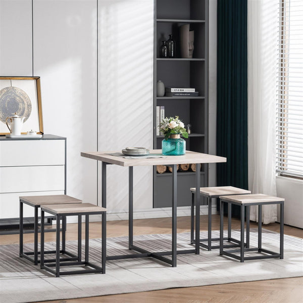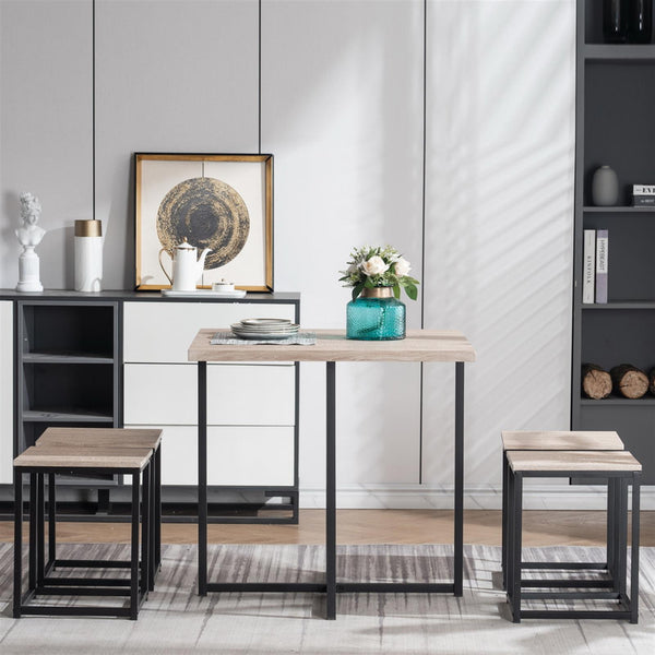 Are you looking for a practical table set for your family? If so, this Dining Table Set is highly recommended to you. Unlike normal table, our table and chair design is simple but it is contemporary. Each edge or line are straight and fluent. It is made of MDF metal material, sturdy steel tube structure to provide strong support for your tableware, durable and easy to maintain. With Exquisite craftsmanship, every part are handled meticulously. This furniture set has straight forward illustrations and descriptions. Every screw and pin has its own code and easy to understand the assemble progress.It will surely reduce your assembly time and worry. So what are you waiting for? Don't hesitate, it's worth buying!Features: