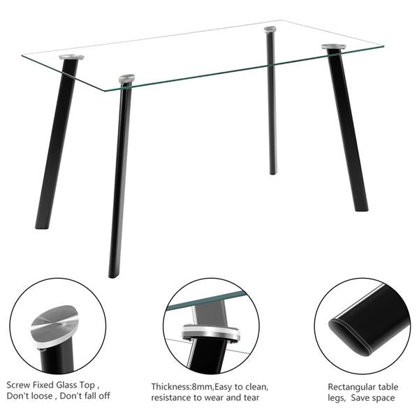 This dinner table allows 6 people to sit around comfortably, which is suitable for kitchens, dining rooms, cafes and homes to use. The sturdy metal construction and 8mm high quality tempered glass ensure the safety and service life of the table. Meticulous rounded corners are designed to ensure the safety of the product. The simple frame structure and smooth surface make your cleaning easier. The stains on the table can be cleaned quickly, which reduces your worry. The tempered glass dinner table is not affected by indoor air and will not be deformed due to improper humidity. In addition, it is healthy, environmentally friendly and has no radiation.