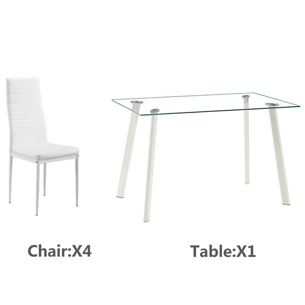 Hot 5 Piece Dining Table Set 4 Chairs Glass Metal Kitchen Room Furniture White