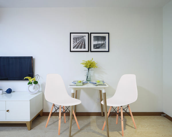 Living Room Chairs/Dining Chairs/Desk Chairs/Office Chairs/Leisure Chairs/Natural Beech Chairs with ABS backrest, a Set of 4, White